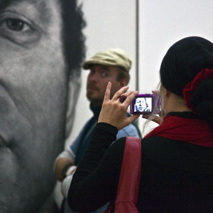 Portrait eines Portraits vor dem Portrait von Chuck Close im
