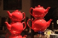 Rote Teekannen. In verschiedenen Größen und Blickrichtungen erhältlich. Sein Geschäft ist in Aachen in der Pontstraße zu finden.