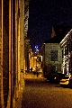 Am selben Abend in Aachen-Burtscheid. Warme und kalte Lichter. Menschen gehen und Gebäude stehen.