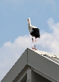 Das Storchenpaar in Kirchzarten hatte dieses Jahr drei Kinder. Eines davon saß stundenlang auf dem Dachfirst uns gegenüber.