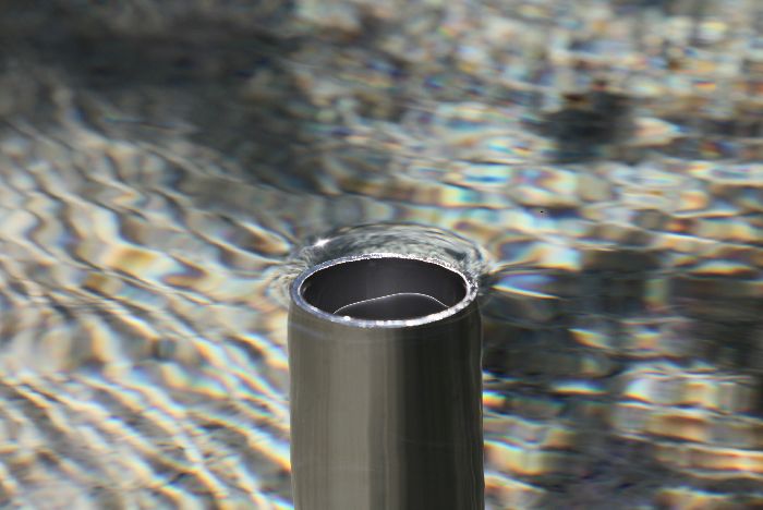 Überlauf eines Brunnens mit Farbeffekten durch die Sonnenstrahlen.