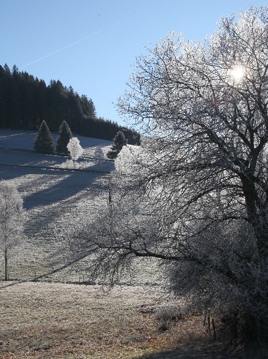 Die Bäume sind mit Eis überzogen, was im Gegenlicht immer eindrucksvoll aussieht.