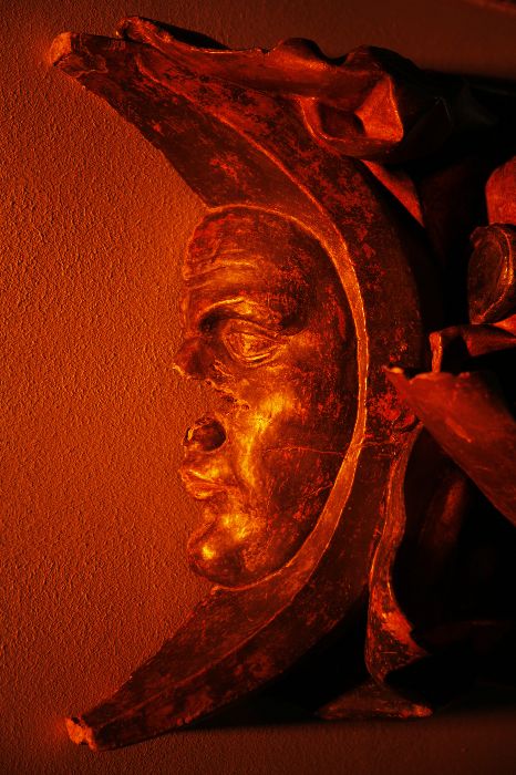 Ziemlich altes Schnitzwerk, unkonventionell beleuchtet
