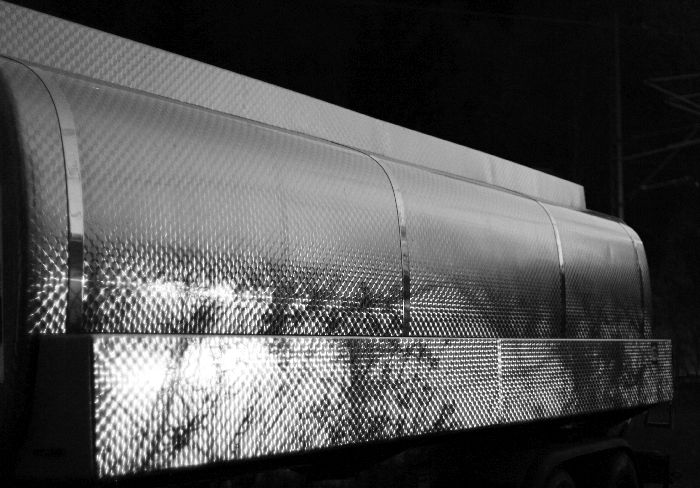 Ein abgestellter Tankwagen, spät abends.