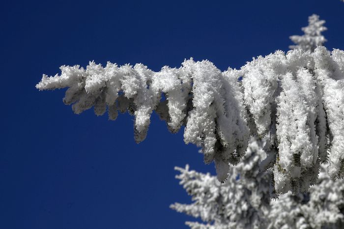 Noch üppiger gedeiht der Schnee auf Fichtenzweigen.