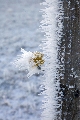 Dieser Zaunpfahl mit dem Isolator bietet den Schneekristallen einen hervorragenden Nährboden.