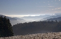 Nebel in den Niederungen des Schwarzwalds, dichte Wolkendecke im Oberrheintal und wieder freie Sicht über den Vogesen ganz im Hintergrund.